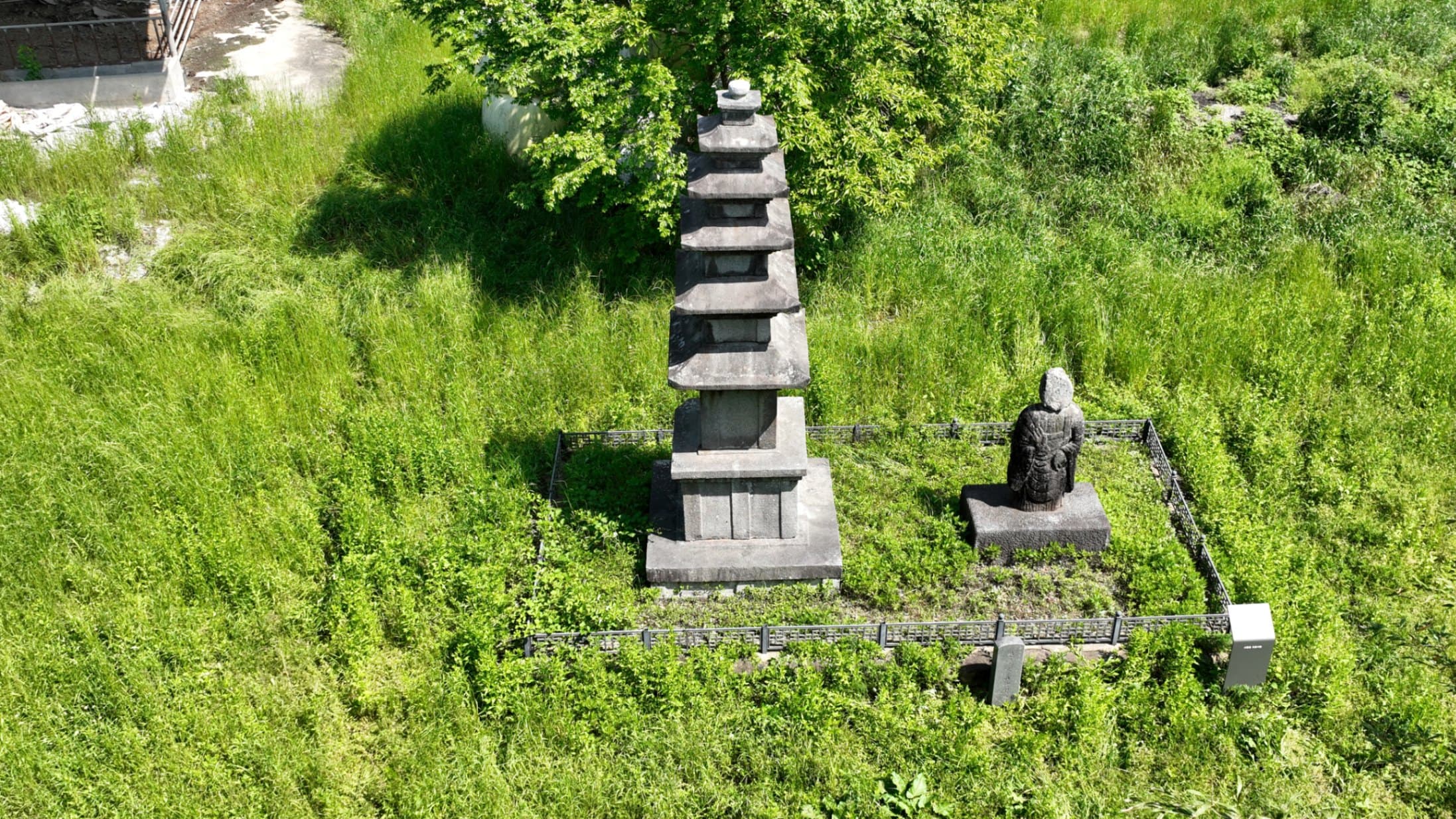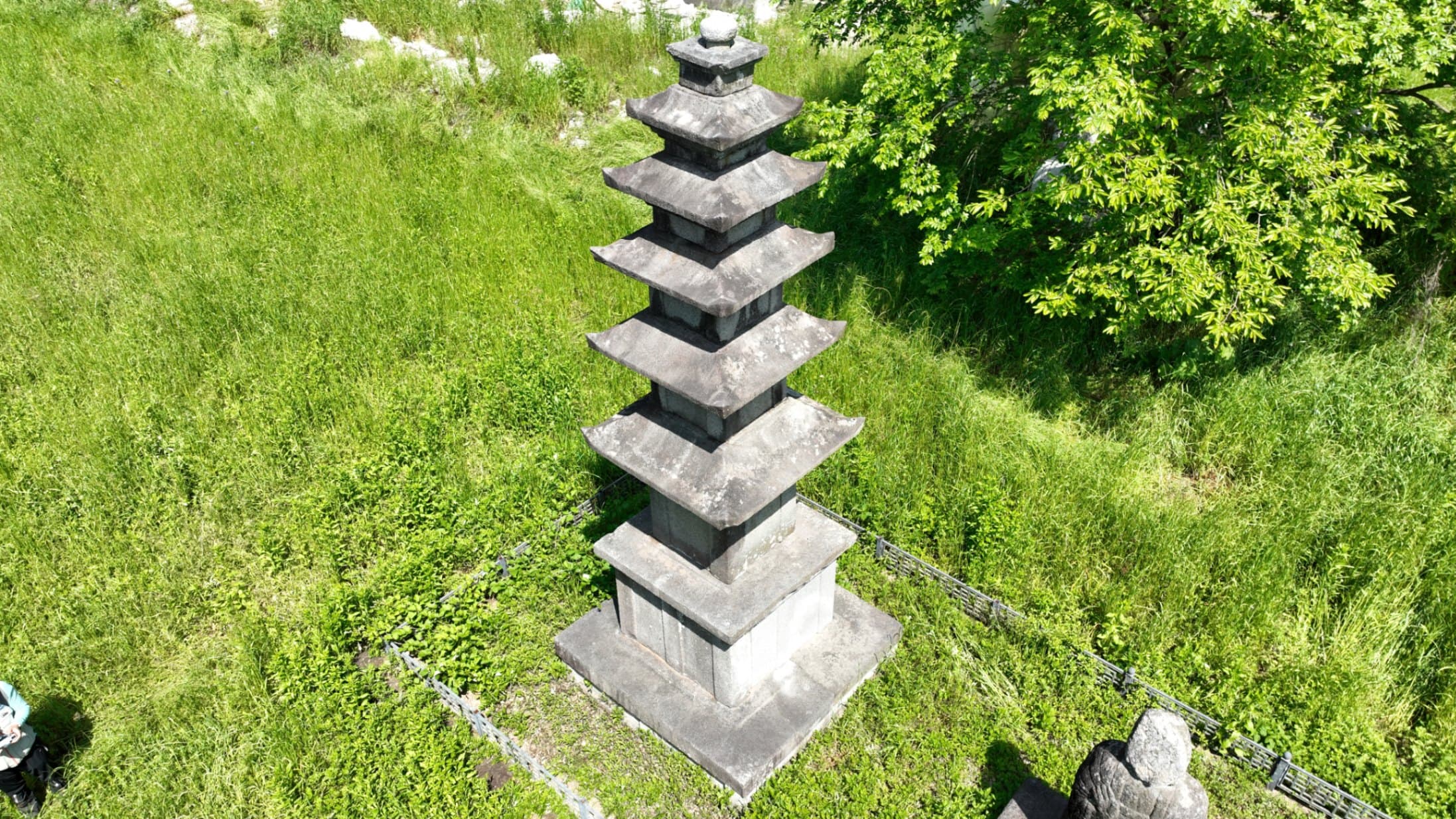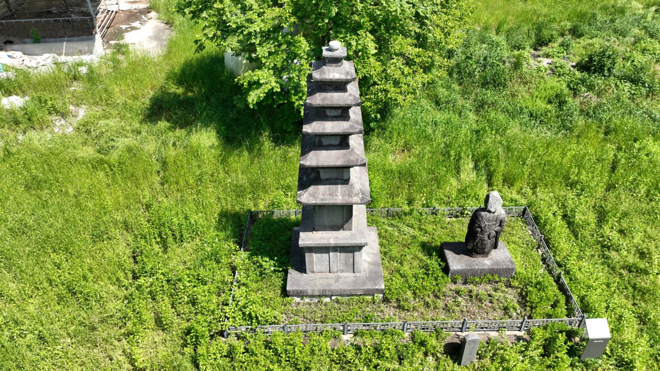 외딴 민가 옆에 우뚝 솟아있는 석탑으로, 현재는 절이 있었던 흔적을 찾아 볼 수 없으나, 그 옆에 석불입상이 1구 있어 상당한 규모의 절이 있었을 것으로 여겨진다.
